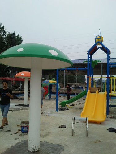 兒童游樂場內有青蛙滑梯、彩虹圈、雨蘑菇、蘋果屋等。